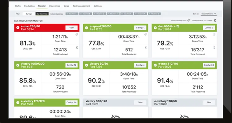 Udnyt din maskinparks fulde potentiale ved at anvende ENGELs digitale løsninger. Her viser vi dig, hvordan du holder styr på din produktion, så du hele tiden har overblik over, hvad der foregår på gulvet.