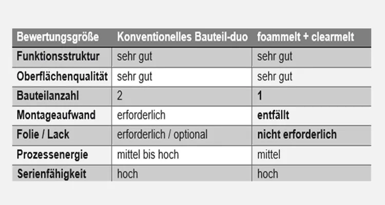 Ob im Automotive-Bereich, in der Unterhaltungselektronik, bei Hausgeräten, in der Medizintechnik oder im Möbeldesign - überall werden Bauteile benötigt, die strukturelle Anforderungen mit einer hochwertigen Oberfläche verbinden. Genau dafür wurde diese Kombination aus foammelt und clearmelt entwickelt.