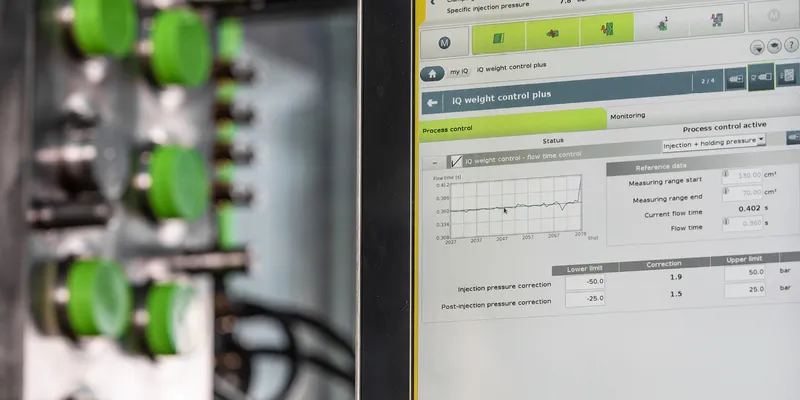 iQ weight control plus significantly reduces the complexity of process settings: instead of up to 40 parameters, only the injection pressure and switchover time need to be fixed. The system automatically creates the optimum injection profile, which means that even less experienced employees can work safely and be trained more quickly.