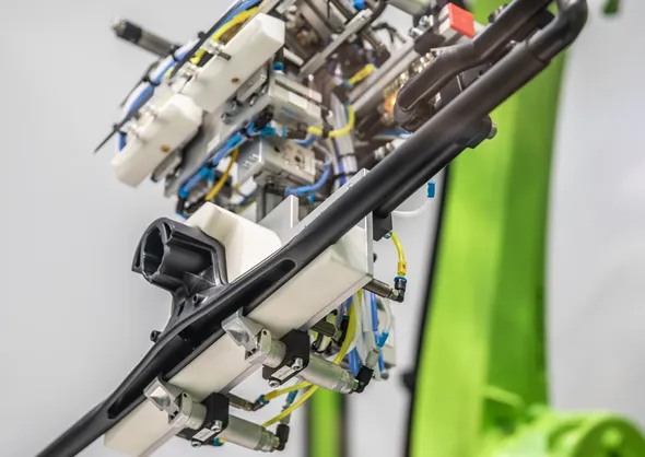 Bicycle handlebars made of polyamide are made on the tie-bar-less victory injection moulding machine using the ENGEL fluidmelt process – a solution for producing hollow parts in injection moulding. The combination with unidirectional (UD) continuous fibre tapes gives the component additional stiffness and structural strength. The result: weight savings combined with high stability and maximum design freedom. The bicycle handlebar is one of the JEC Composites Innovation Award finalists in the category Sport, Leisure & Recreation.