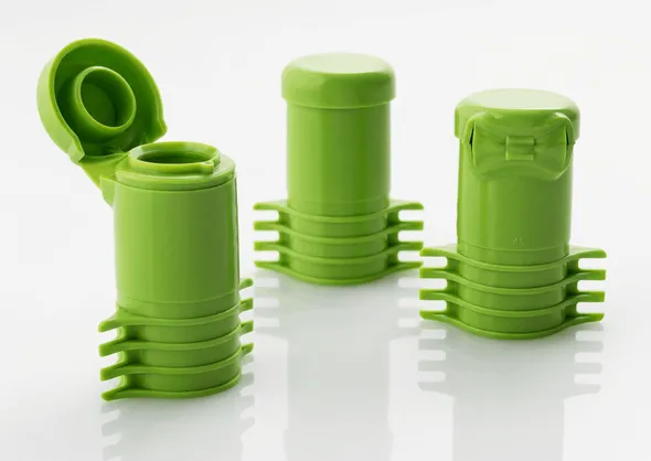 Special versions of flip-top closure caps produced on the e-mac 380 show how high cavity counts and short cycle times can be implemented cost-efficiently with stable component quality.