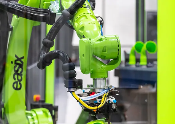 Whether it’s pick-and-place applications with integrated conveyor belt placement, inserting seals, or overmolding inserts - our automation solutions are highly versatile for the production of your plastic fittings. The automation system is fully integrated into the CC300 machine control and comes CE-certified from the factory. Programming and parameter setting are carried out directly via the control system - easily and safely through an intuitive user interface.