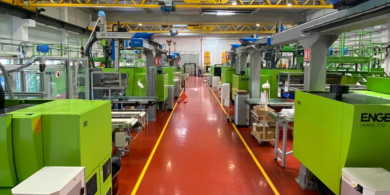 Le centre de production de GLORY de nos jours, avec plus d’une 30aines de presses à injecter ENGEL